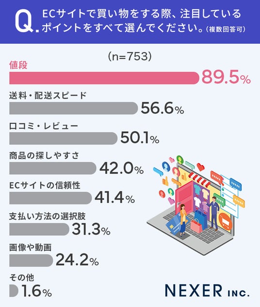 「値段」は89.5%、「送料・配送スピード」は56.6%の人が選んでいます。