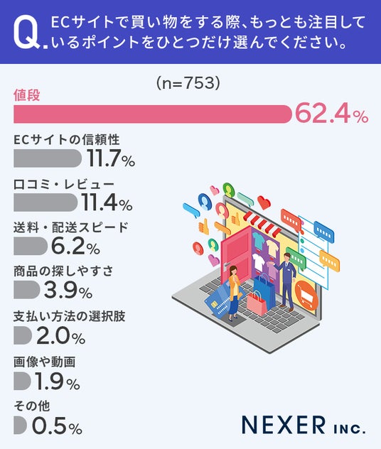 まず、ECサイトで買い物をする際、注目しているポイントに関する調査を行いました。