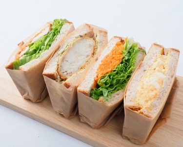 こだわりの具材をからだにやさしい「全粒粉」の食パンに挟んだ“からだがよろこぶサンドイッチ”。