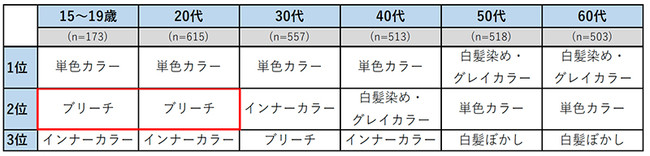 ポイント3. 女性のカラー人気が継続。若年層に「ブリーチ」が人気