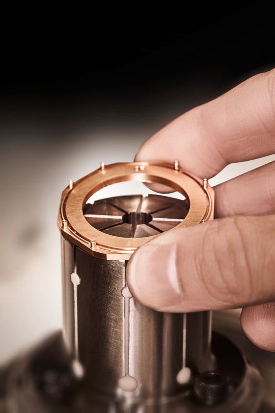 2024年11月14日にオープンした新しい工房は、ダイヤルとケースの生産が1か所に集約されたユニークな体制となっています。新しいフロアが追加されたことで、総敷地面積は3,400平方メートルから4,400平方メートルに拡大されました。この拡充とウォッチメイキングの多様な工程とともに、垂直統合によってもたらされるシナジーをブルガリは最大限に活用できるようになります。