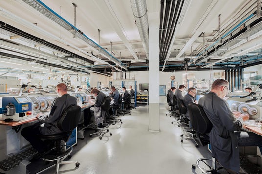 セーニュレジエのマニュファクチュールにはさまざまな大型の製造設備が整っており、小ロットから中ロットまで対応可能な部門と、クラフツマンシップが駆使される職人の部門があります。これに合わせた人の動きとプロセスの流れ、アイデアの共有と生産の卓越性を高めるために従来のスペースを再設計する必要がありました。セーニュレジエにて、製造のプロセスと職人による行程の融合は新たなる次元のものとなりました。わずかな粉塵の混入さえ許されないラッカーダイヤルと、複雑なハードストーンのモザイクが同じ工房で作られているということからもそのことがうかがえます。