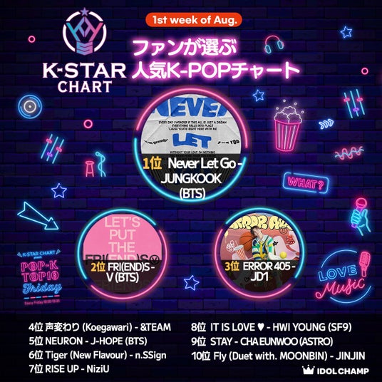 『K-STAR CHART presents POP-K TOP10 Friday』8月2日(金)の放送回において6位にn.SSignの「Tiger(New Flavour)」、4位に&TEAMの「声変わり」が初登場ランクインし番組内で放送されました。