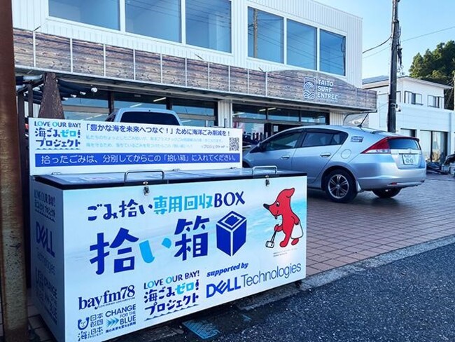 パソコンの「デル・テクノロジーズ株式会社」とのコラボバージョンの「拾い箱」など、設置箇所合計6ヶ所は、当初3月末までの予定を、設置場所の協力で8月まで延長となりました。梅雨時に流れてくるごみを拾い、夏の行楽シーズンもキレイな海を保っていくことで、海への親しみや楽しさを再発見してもらえればと思います。