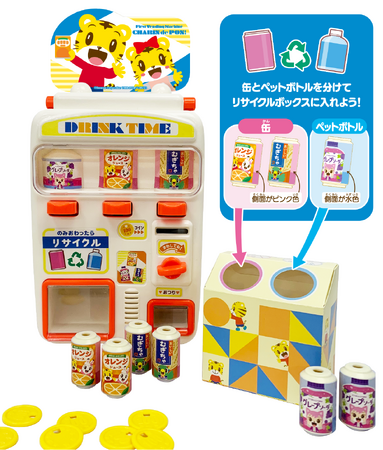 じはんきでジュースの買い方を遊びながら学べるだけでなく、リサイクルボックスもついているので、缶とペットボトルの仕分けも学べます。