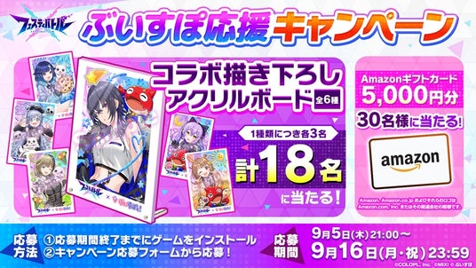 本企画開催記念キャンペーンとして、期間中にゲームをインストールし、キャンペーン応募フォームから応募した方から抽選で計18名に「ぶいすぽっ!コラボ描き下ろしアクリルボード」(全6種各3名)をプレゼントいたします。