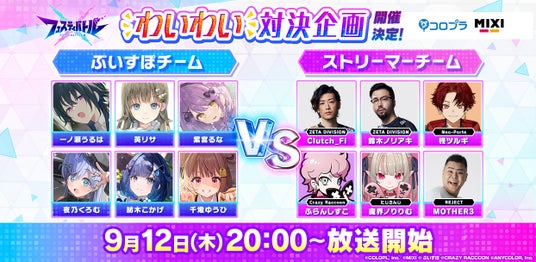 公式番組で運営とガチバトルで見事勝利した「ぶいすぽっ!」のメンバー(一ノ瀬うるは/英リサ/紫宮るな/夜乃くろむ/紡木こかげ/千燈ゆうひ)。今度は運営が用意した刺客であるストリーマー軍団に挑む企画を『フェスティバトル』公式YouTubeチャンネルや各出演者の配信にて2024年9月12日(木)20時より放送いたします。