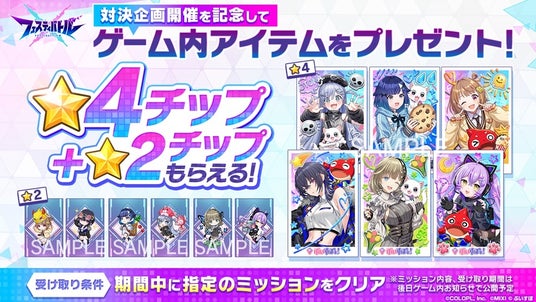 対戦企画開催を記念して、ゲーム内にコラボ限定チップを追加します。これらのチップは後日ゲーム内お知らせで公開予定のミッションを期間中にクリアすることで入手できます。