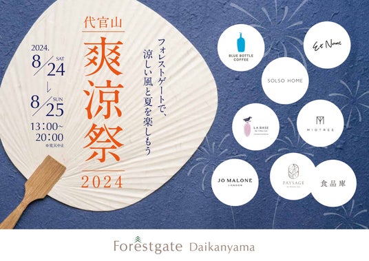 昨年開業した代官山駅の目の前の商業施設・フォレストゲート代官山が爽涼祭に初参加します。各店舗が夏の終わりにふさわしいコンテンツをご用意するほか、浴衣姿とマッチする爽涼祭オリジナルフォトブースが登場します。ぜひお立ち寄りください。