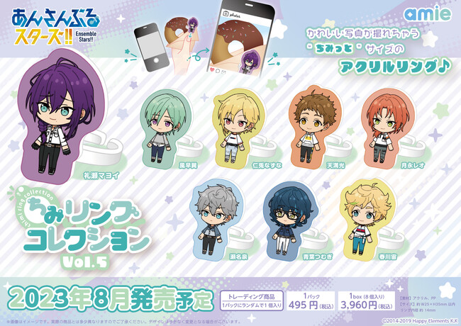 フィギュア&ホビー通販大手の「あみあみ」を運営する大網株式会社(本社・東京都文京区)は、自社が展開するグッズブランド「amie(アミィ)」から「『あんさんぶるスターズ!!』ちみリングコレクション」の「Vol.5」「Vol.6」を、発売いたします。