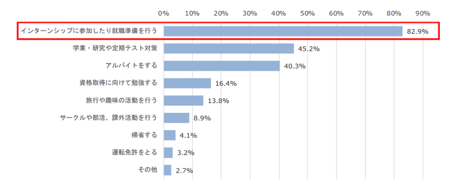 1月はインターンシップ参加や就活準備と学業・定期試験との両立に悩んだ学生が約7割