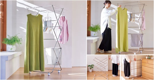 瀧本真奈美さんとつくったマキシ丈ワンピースも干せるステンレス製室内物干し