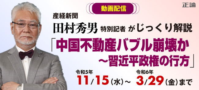 月刊「正論」(産経新聞社発行)は、ユーチューブ番組「チャンネル正論」のスピンオフ企画として産経新聞特別記者、田村秀男氏の動画「中国不動産バブル崩壊か~習近平政権の行方」を産経iDで販売中です。