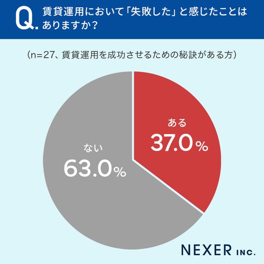 37%の方が、賃貸運用において「失敗した」と感じたことが「ある」と回答しています。