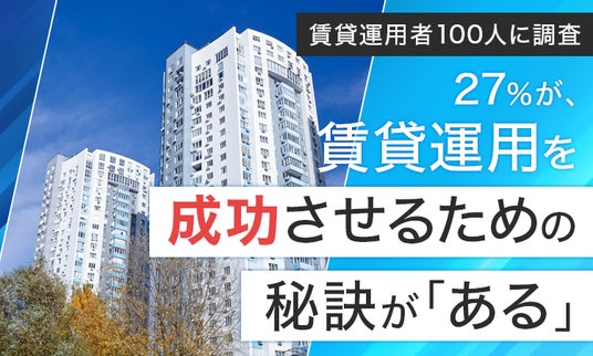 そこで今回は『株式会社日住サービス』との共同調査で、事前調査で「賃貸運用をしている」と回答した全国の男女100名を対象に、「賃貸運用を成功させるための秘訣」についてのアンケートをおこないました。