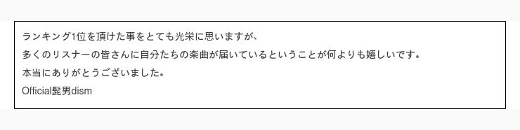 【Official髭男dism「Subtitle」が楽曲再生回数ランキング部門で1位!】