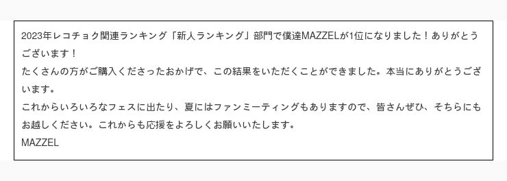 【MAZZEL がダウンロード「新人ランキング」1位!】