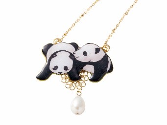 〈熊猫惑星〉淡水パールと双子のネックレス(高さ約40mm、チェーンの長さ約600mm) 2,530円