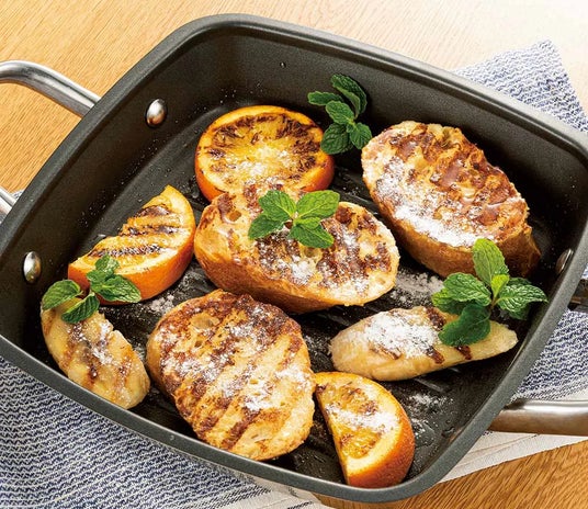グリルプレスを食材の上に置いておくだけで焼き料理が美味しくなります。