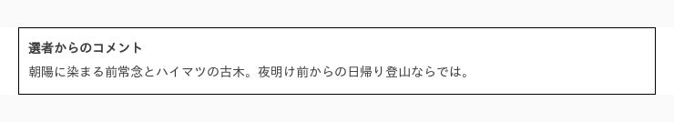 選者(『黒部源流と大峡谷を行く』の著者・栗田貞多男氏)のコメントとともに、受賞作品全10作を発表いたします。また、「#モンブックス山の日フォトコン2023」のハッシュタグより、InstagramおよびTwitter(X)にご応募頂いたすべての作品をご覧いただけます。ぜひタグ検索をして、素敵な作品をご覧下さい!