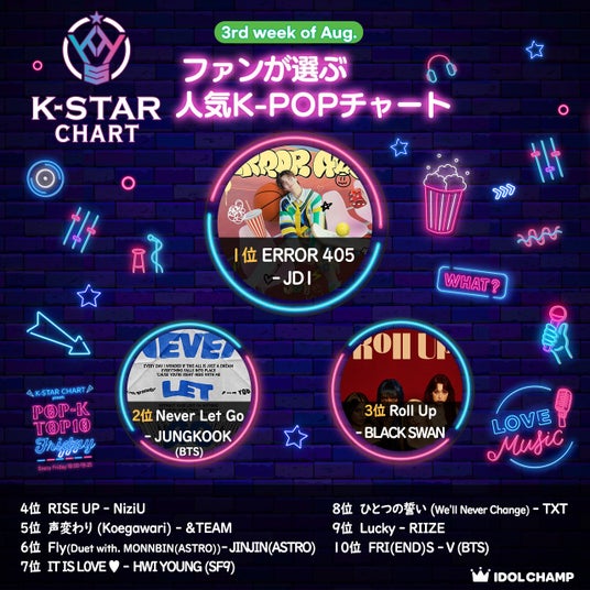 『K-STAR CHART presents POP-K TOP10 Friday』8月16日(金)放送回のチャートは表示の結果となりました。
