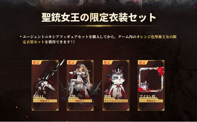 特典として、「エージェント・ニキシア 女王記念衣装セット 交換コードカード」が付きます。