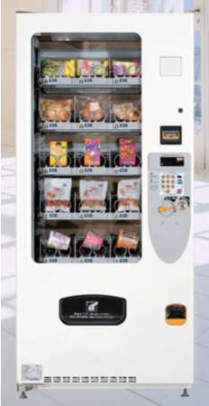 バッグをたたんで商品の説明が入った帯を巻き、自動販売機にて販売。