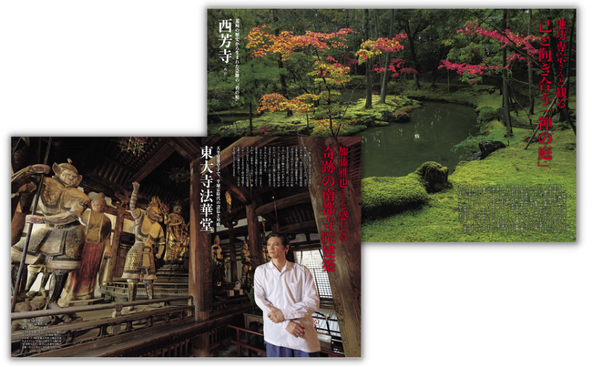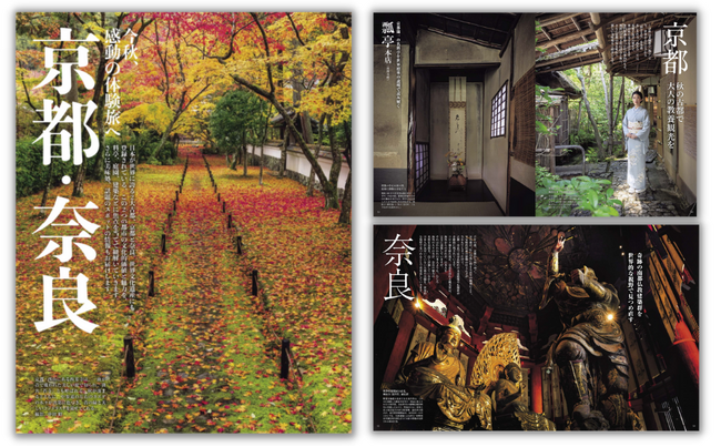 京都編は、世界から注目される"料亭文化"を、老舗料亭「瓢亭」で体感。美しき苔寺「西芳寺」では、荒廃と復活の歴史と、禅の庭の見方を学びます。専門知識を持つかたの案内のもと、奥深い日本文化に出合う旅へ。奈良編では、今も奇跡的に残されている奈良時代の木造建築や仏像群のうち、南都奈良の世界遺産6社寺を取材。世界的な視点を意識しながら、古代建築を軸にその魅力と価値、見方などを、紐解いていきます。また、京都・奈良編ともにの美食・宿・記念館など話題の新名所もご紹介。