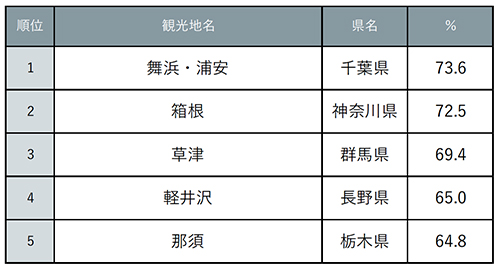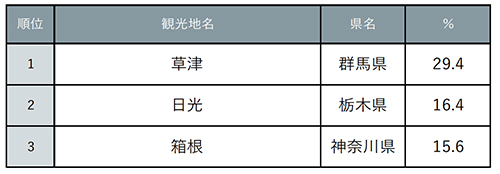 首都圏からアクセス良好で、観光名所やグルメが充実している温泉地エリアがランクイン。