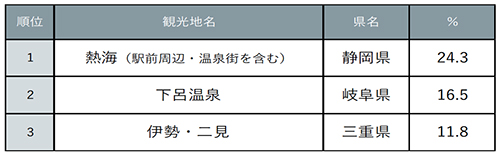 近場リゾートでバカンス気分を存分に味わえる「熱海」が1位に
