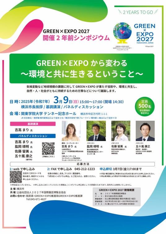 GREEN×EXPO 2027(2027年国際園芸博覧会)の開催2年前プロモーションの一環で、シンポジウムを開催します。