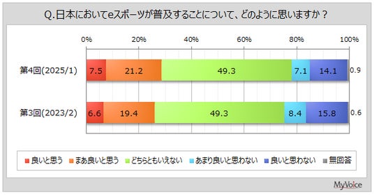 日本においてeスポーツが普及することについて、どのように思うかを聞きました。