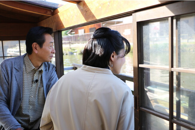 まずは、国宝・彦根城の内堀をゆったりと巡る船旅から。彦根藩主・井伊家の専用船を復元した屋形船から、ある工夫が施された石垣と天守閣の絶景を眺めます。