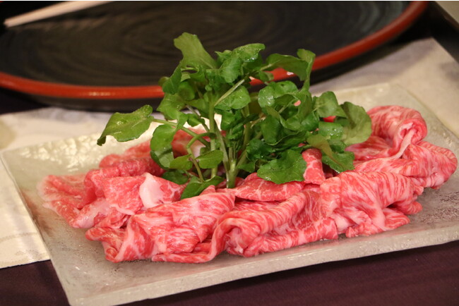 そして、メインのしゃぶしゃぶが登場!最上級の近江牛を、クレソンと一緒にしゃぶしゃぶして頂きます。意外な組み合わせですが、気になるお味は?