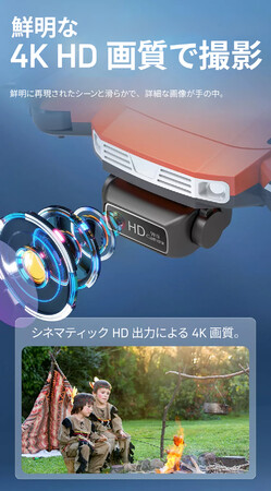 4K HDカメラの解像度は、画像であれば3840×2160、動画の場合1920×1080。本格的な高解像度カメラとなります。小さい機体ながらも高解像度の撮影が魅力です。ドローンならではの視点を活かしながら撮影する高解像度の画像や映像は圧倒的な迫力を実現します。