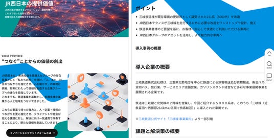 ・ 「導入事例」新設、「トータルDXコーディネート」「JR西日本の提供価値」などのランディングページを整備