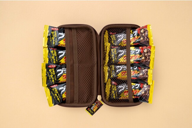 ハードケースには8本、ポーチには10本、本物のブラックサンダーを収納できるサイズ感!