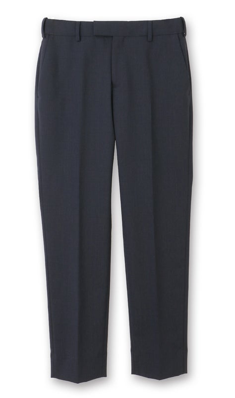 王道のネイビーに程よい表情感のある組織柄をあしらった品のあるスーツです。ストレッチ性もあり、着心地も良く、初めての1着にもおすすめです。ボトムスはフレアスカートとテーパードパンツの2種類があるので、お好みによって着こなせます。