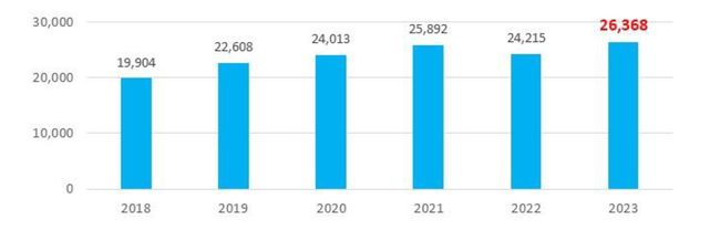 2022年3月1日時点の掲載社数は過去最高の2万6,368社(前年比2,153社増)【図1】