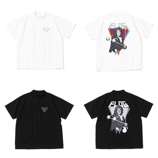 FLOG の定番でもあるオリジナルボディのモックネックシャツをベースに、胸にはコラボロゴを配置し、バックにはシルクスクリーン・アートクルーの Hedonizm との共作であるプリントを大胆に配置。彼らならではの世界観にゴルフを落とし込んだ、アートを⽻織るに相応しい一枚に。