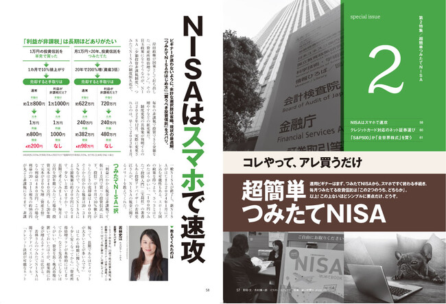 第2特集は「超簡単つみたてNISA」。つみたてNISAは、作ろうと思えば30ページくらいは作れてしまうのですが、あえて短~~くポイントだけに絞った記事にしました。