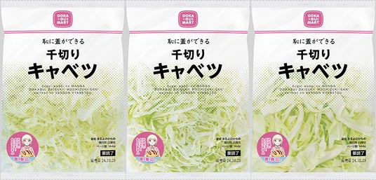 『ドカ食いダイスキ!もちづきさん』第4話にて、もちづきさんがコンビニで大量の商品を買っていたことを同僚に隠すため、とっさに千切りキャベツで隠した"緑地化"エピソード。今回のピールオフ広告では”千切りキャベツ”風のピールオフアイテムを制作し、SNSでも話題を読んだこの場面をまさかの再現! 216枚もの千切りキャベツ風ピールオフアイテムで「蓋」をされ、隠されたものとは…? ピールオフアイテムがなくなった後のポスターもお楽しみに!