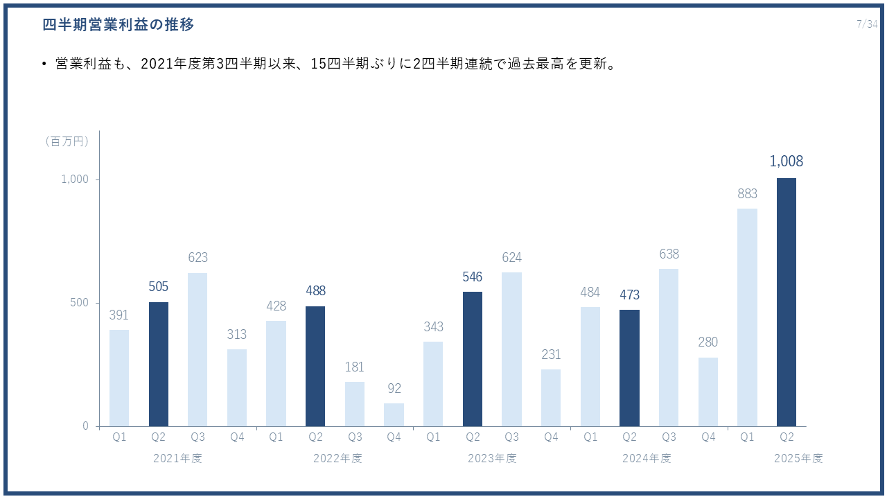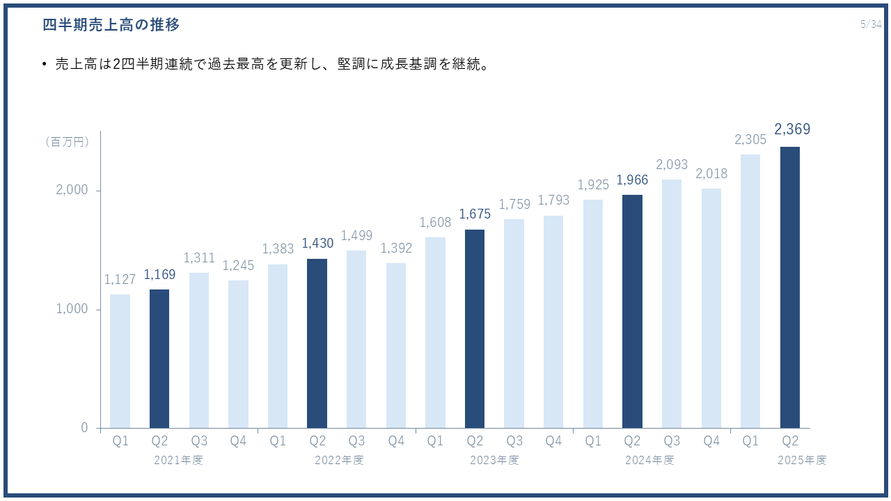 四半期売上高の推移では、2四半期連続で過去最高を更新しました。