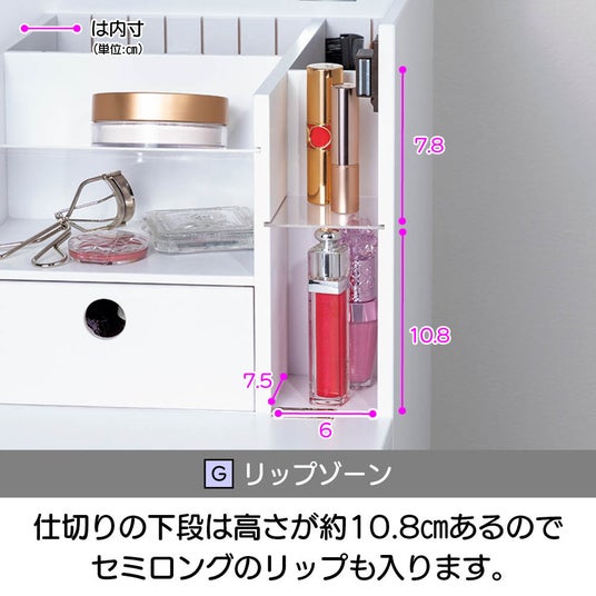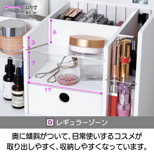 リップからマスカラまできちんと収納!アクリル棚板で見やすさが魅力