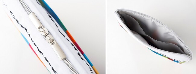 使いやすいダブルファスナー。内側には便利な仕切り付きです。
