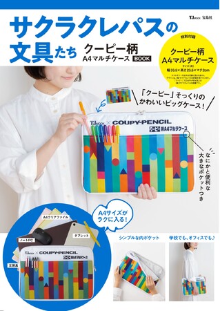 シリーズ累計180万部突破の「人気文具付録」シリーズの最新刊、『サクラクレパスの文具たち クーピー柄A4マルチケース BOOK』を2022年9月27日に発売します。
