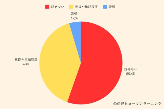 新しい「職業別英会話」シリーズの制作にあたっては、サービス業で働き、英語で接客経験のある1,000人を対象に英会話に関する調査を実施しました。本調査では、現場で働く従業員の英語レベルについて、「話せない: 55.36%」、「挨拶や単語程度: 40.04%」、「流暢: 4.6%」、と、過半数の従業員が「話せない」と回答し、次いで「挨拶や単語程度」が多いことが明らかになりました。このため、テキストは初中級の方々が求める、現場で即実践できる英語表現を中心に作成しました。