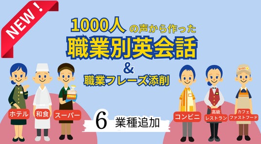 産経ヒューマンラーニング株式会社(本社:東京都新宿区、代表取締役:中谷友紀、以下「当社」)は、日本国内でサービス業に従事し、英語を使って働く方々1,000人の声をもとに作成した、現場で使える実践的な英語表現を習得するためのテキスト「職業別英会話」シリーズに、新たな業種を追加いたします。既存の5業種に「ホテル」「和食料理店」を加え、5月30日(木)には「スーパー」「コンビニ」「高級レストラン」「カフェ・ファストフード」を追加いたします。