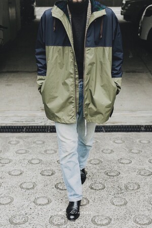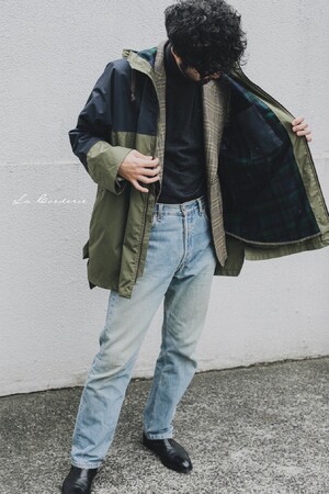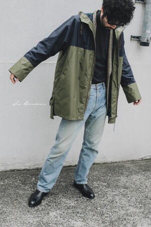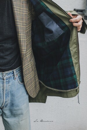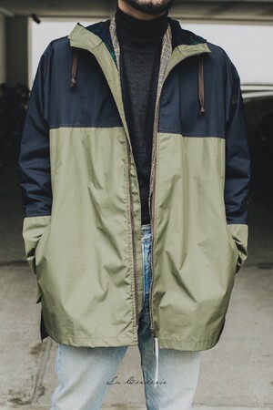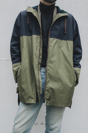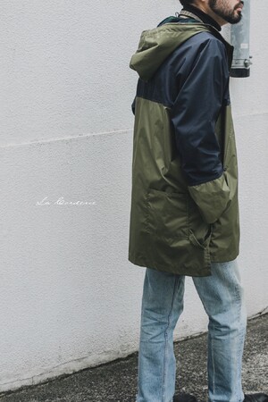 アウトドア、ワーク、レインコート、あらゆる要素が混じったフードコート。袖付けや、裏地の選び方など、スーザンの経験とセンスが光る。