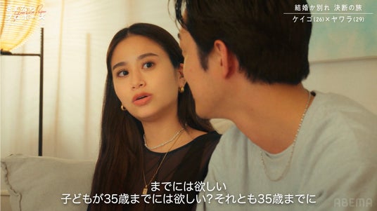 第6話では、この旅で初めてケイゴが将来子どもをほしいと思っていたことを知ったヤワラが、「だいたいどのくらいのイメージ?」「3年以内とか、5年以内とか…」と具体的なプランについて質問。さらに、ヤワラは「付き合った当初からお金には結構シビアですよっていうことを伝えていた」「1年前から結婚したいなって密かに思ってくれていたなら空振りした感じ」「子どもって絶対お金のかかることだからケイゴくんの覚悟がどうなのか気になる」とケイゴの貯金がないことや結婚した後のお金についての本音をぶつけます。ケイゴは「すぐにって話じゃないし俺も仕事頑張りたい」「責任を持って親になるならば覚悟が必要だと思っている」と語るも、ヤワラは自身の仕事と育児の兼ね合いなど具体的なこどもが生まれた後の生活の不安を口にし、「2人で子どもを授からないっていう道を選んで過ごす未来もあるのかなって…」と赤裸々に語りました。